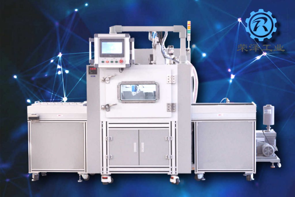 真空箱内配合三轴机械手,实现单个点胶阀或多个点胶阀协同对产品进行灌胶。